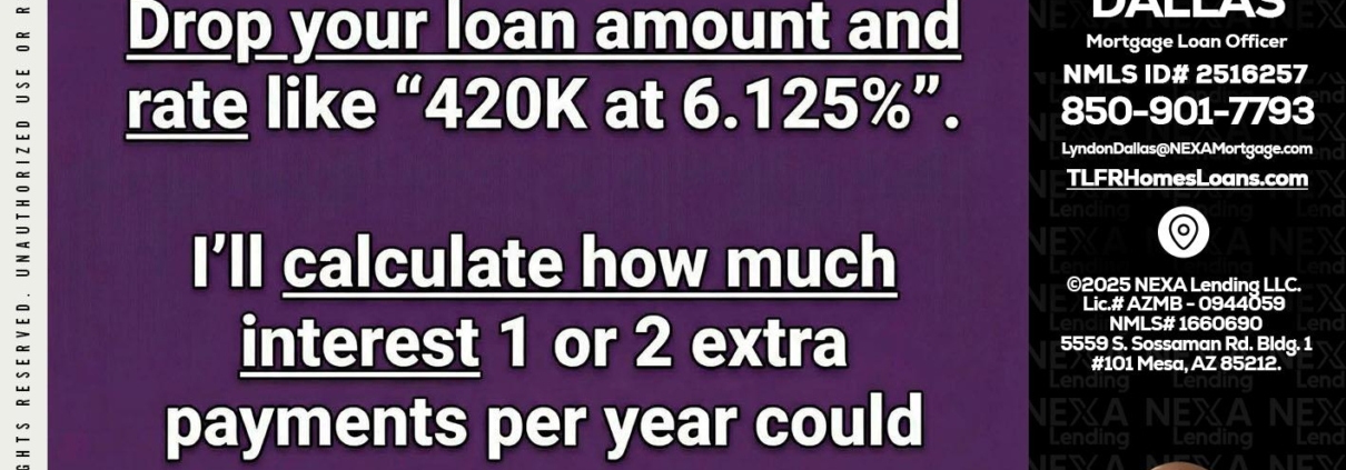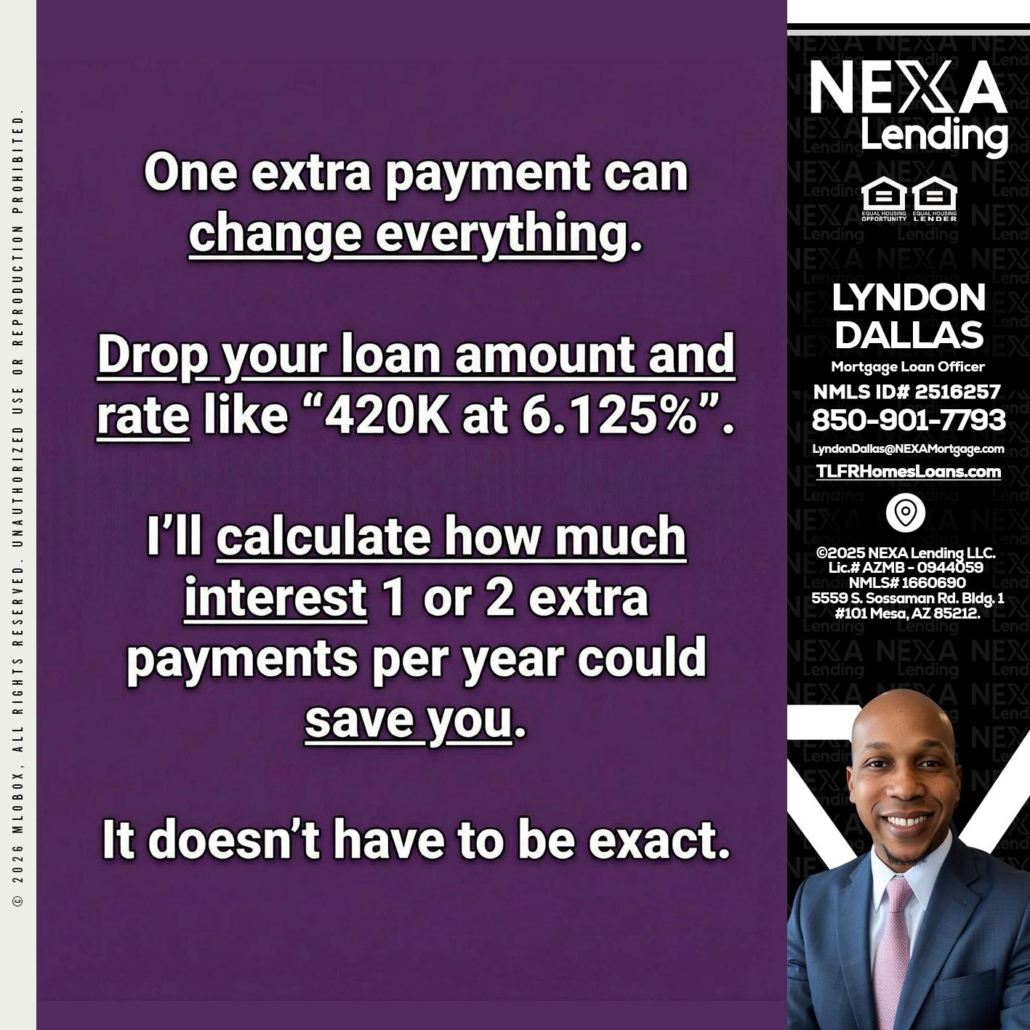 ONE EXTRA - Lyndon Dallas -Mortgage Loan OfficerHi, my name is Lyndon Dallas. I’m a Loan Officer with NEXA Lending, LLC, offering personalized mortgage solutions, fast customized quotes, great rates and service with integrity.
