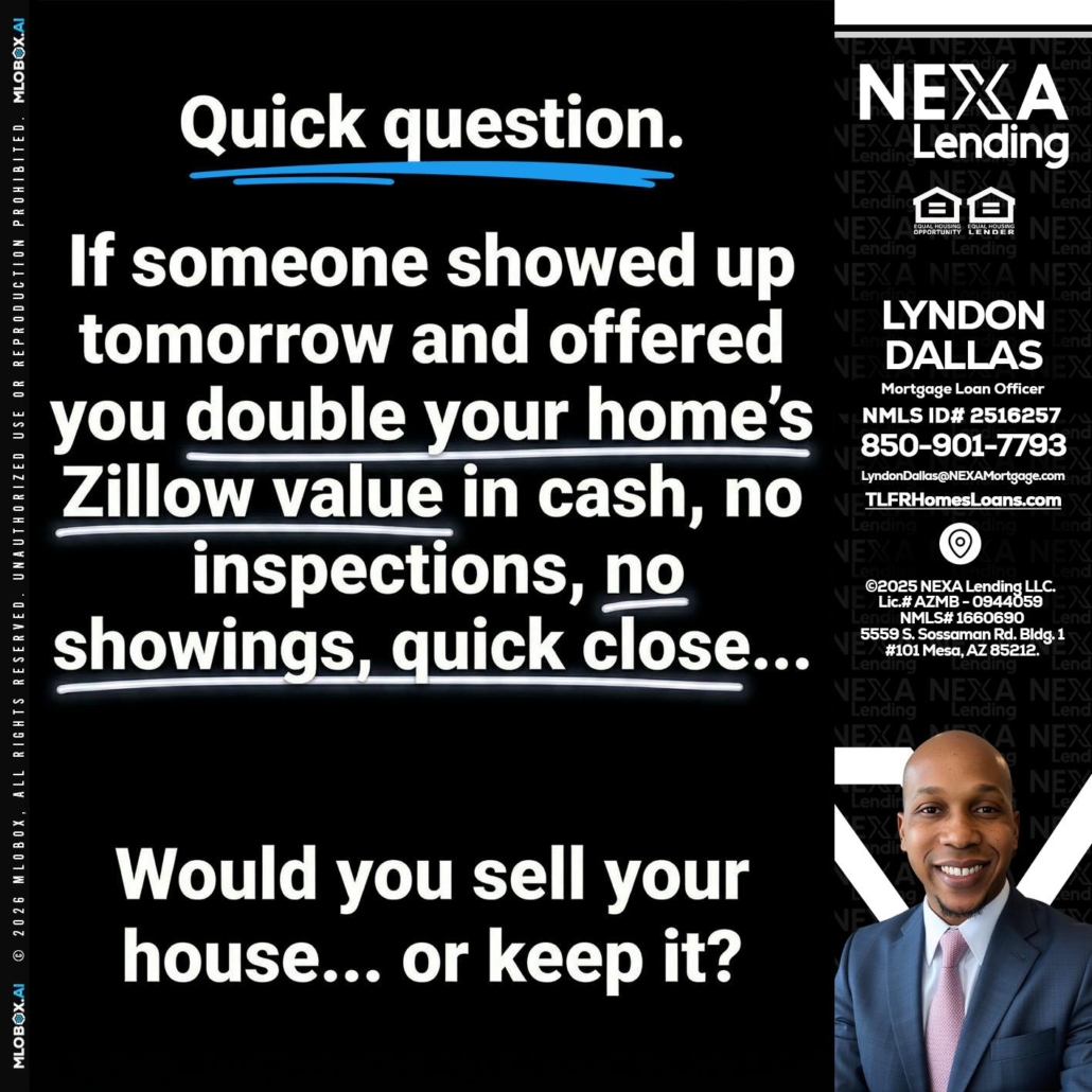 Hi, my name is Lyndon Dallas. I’m a Loan Officer with NEXA Lending, LLC, offering personalized mortgage solutions, fast customized quotes, great rates and service with integrity.