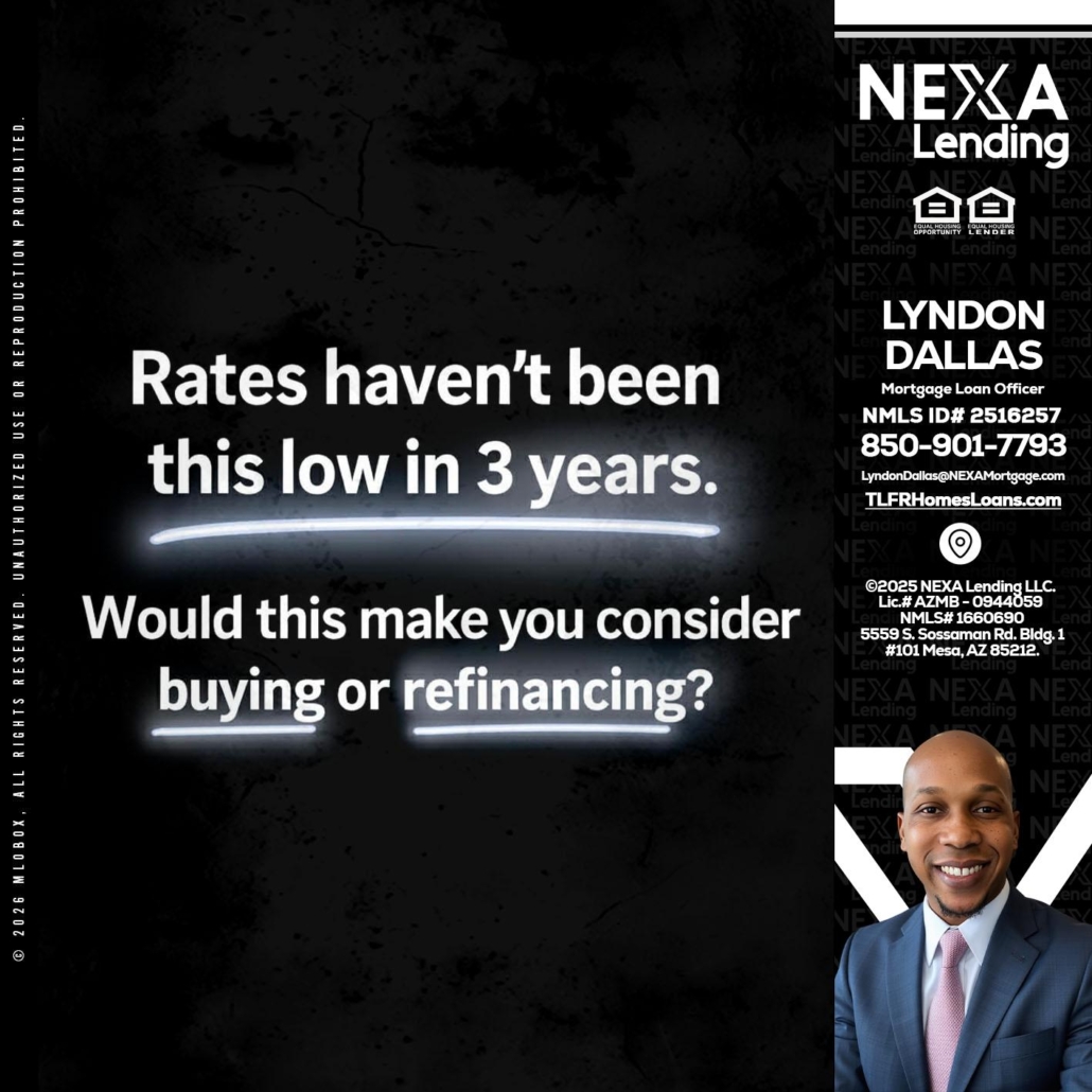 Hi, my name is Lyndon Dallas. I’m a Loan Officer with NEXA Lending, LLC, offering personalized mortgage solutions, fast customized quotes, great rates and service with integrity.