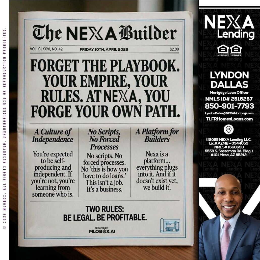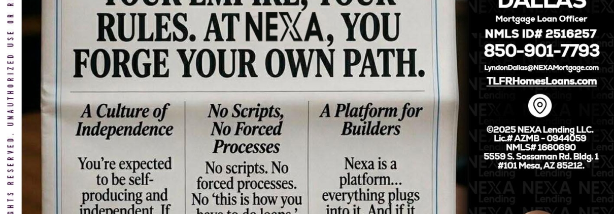 Hi, my name is Lyndon Dallas. I’m a Loan Officer with NEXA Lending, LLC, offering personalized mortgage solutions, fast customized quotes, great rates and service with integrity.