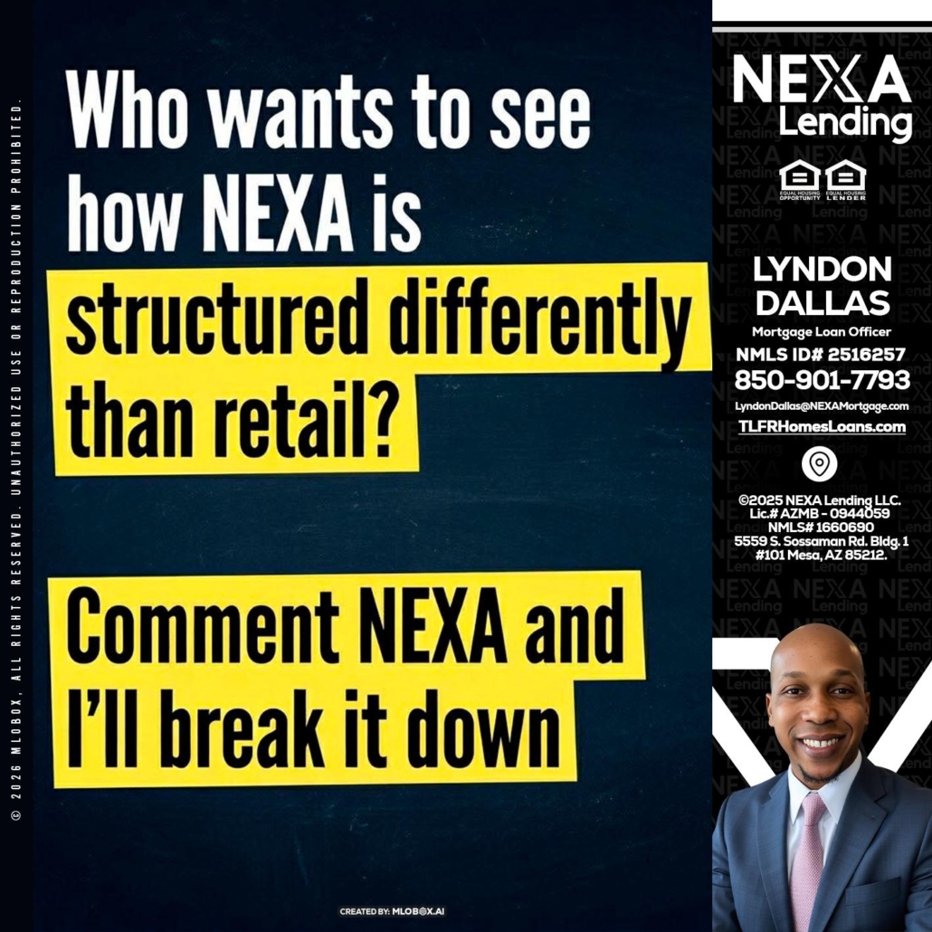 who want to see - Lyndon Dallas -Mortgage Loan OfficerHi, my name is Lyndon Dallas. I’m a Loan Officer with NEXA Lending, LLC, offering personalized mortgage solutions, fast customized quotes, great rates and service with integrity.